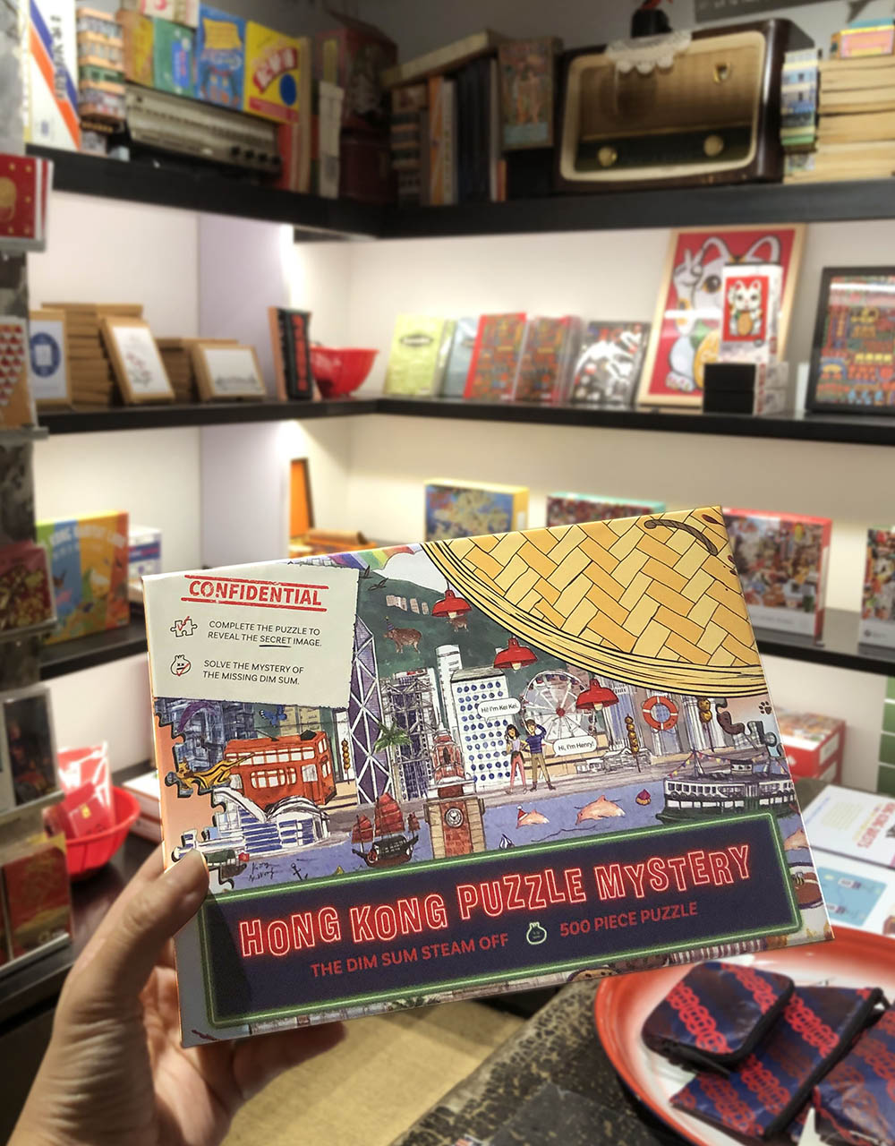 Designed with love in Hong Kong. With hand-painted artwork by award-winning local artist, Kitty N. Wong. Mystery story filled with cultural quirks written by tour guide Virginia Chan of Humid with a Chance of Fishballs Tours.